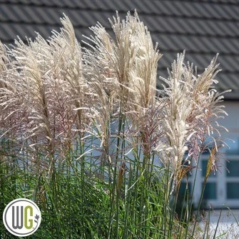 Flerårig græs.120cm høj flot grøn græs med hvid bladribbe. Smukke cremehvide fjeragtige aks, der når en højde på op til 180cm. Imponerer med sine aks tidligere end andre sorter og når at sætte flere aks inden vinteren. Flot vinterstand. Trives i sol til halvskygge i almindelig havejord.