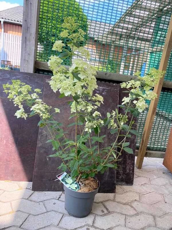 Hortensia (Hydrangea paniculata `Rispenhortensie`) blomstrer fra midt sommer frem til efteråret med smukke hvide / lime farvede blomster. En hårdfør sort der er nem at passe. Bliver op til 1,5 høj. Sælges i 5 ltr. potte.